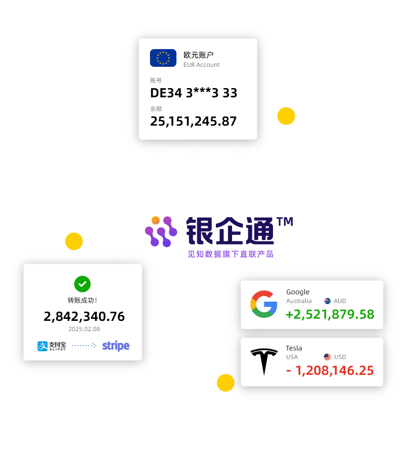 银企直联,又称银企直连或银企互联,是银行与财务、业务系统的相连,实现直接办理账户管理、转账支付等服务。见知银企通是为企业提供的一站式对接国内外银行及三方系统的超级平台产品。最快可以2分钟内开通全球20,000余家银行及三方系统的直联。
